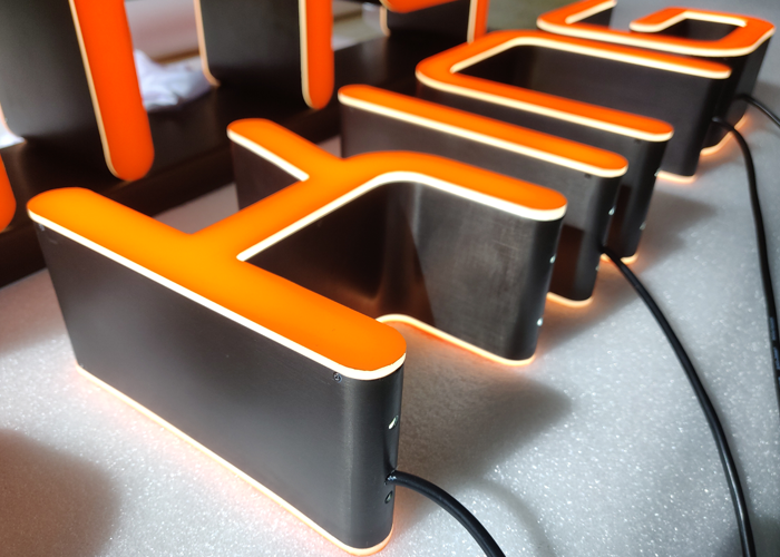不銹鋼外露發(fā)光字:不銹鋼板作為發(fā)光外殼,前部打孔,氬弧焊焊接,噴涂汽車漆后研磨拋光,然后安裝LED外露防水燈進行串聯(lián)連接,大部分用于大型商場、企業(yè)大廈、房地產(chǎn)等商業(yè)場所的戶外廣告牌。