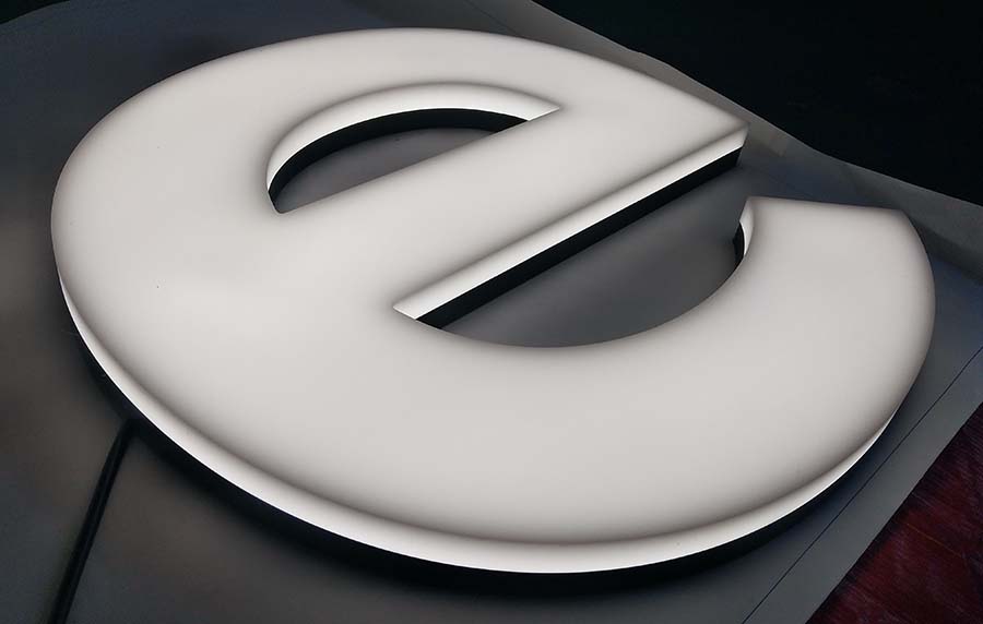 特點(diǎn)1:無(wú)包邊,整個(gè)字體看起來(lái)整體性強(qiáng),看不出明顯配件組合的痕跡,若鋁邊邊帶與面板顏色一致,那字體各個(gè)配件就完全融合為一體了。這對(duì)于一些只想突出某一色調(diào)風(fēng)格的廣告門(mén)頭非常適用。亞克力板材表面光澤度高,且光滑平整,在不亮光的情況下字體表面就好比一塊有色平面鏡,這樣一來(lái),字體就算在不發(fā)光情況下,也具有非常良好的廣告效果了。